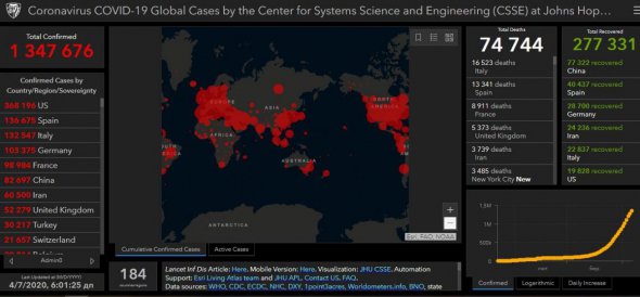 Кількість інфікованих у світі ще 2 квітня перевалила за 1 млн осіб. А зараз складає 1 347 676 осіб.
