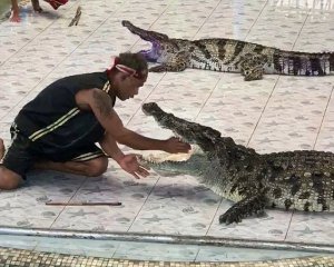 Крокодил вчепився дресирувальнику 45-річному Тао в руку під час виступу у тайському заповіднику Фоккатара в тайському місті Чанграй.