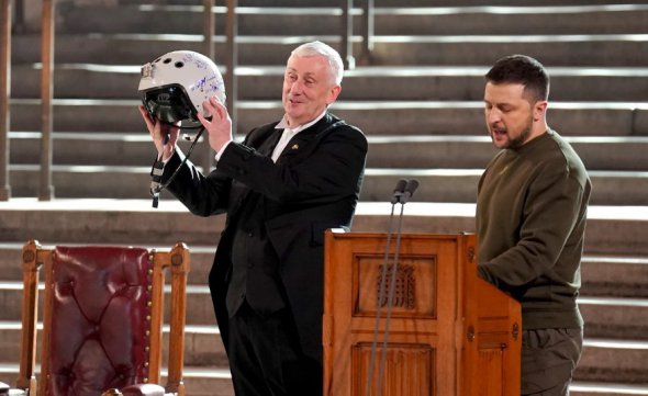 Він подарував британському парламенту каску українського пілота винищувача з написом: "У нас є свобода. Дайте нам крила, щоб захистити її".