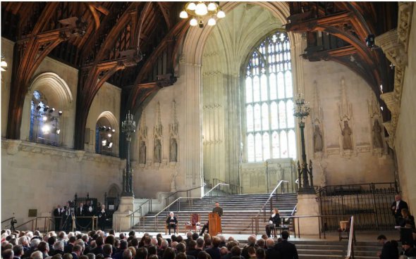 Найбільш змістовною частиною його промови була ідея, як багато поставлено на карту. За словами Зеленського, війна йде не лише за Україну, але за зміни у світі та загрозу міжнародному правопорядку. Стверджуючи, що Велика Британія "йде з нами в коаліції друзів та цінностей", він пообіцяв, що в майбутньому "не буде сірих зон, де людське життя не має значення".