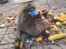 Продавці пояснюють, що його розгодували туристи — він дуже жалібно випрошував їжу, пише Daily mail.