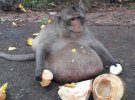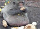 Довгохвосту макаку на прізвисько Дядечко Жир із базару у Бангкоку, Таїланд, відправили у табір схуднення для тварин. Тварина важить удвічі більше норми.