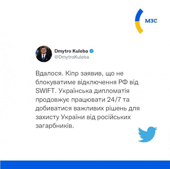 Останніми підтримали відключення Росії від SWIFT Кіпр, Угорщина та Німеччина.