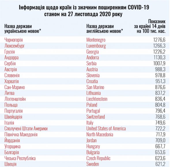 Список склали із урахуванням кількості активних випадків коронавірусної хвороби на 100 тис. населення.