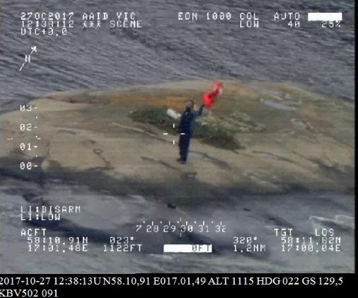Щоб привернути до себе увагу, постраждалий розмахував червоним прапором і виклав із моху слово "Допоможіть" англійською мовою.