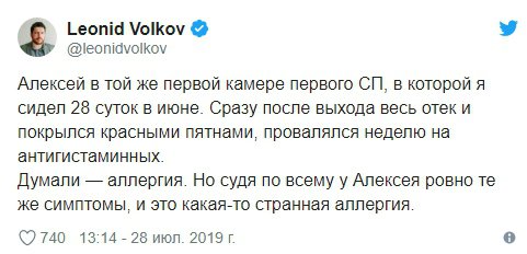 Російський опозиціонер Олексій Навальний, який відбував адміністративний арешт в спецприймальнику в Москві, 28 липня потрапив до лікарні.