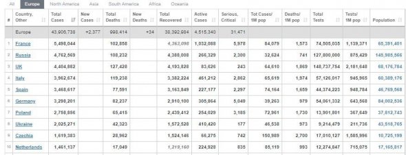 ЧИТАЙТЕ ТАКОЖ: Україна посіла п'яте місце в Європі за смертністю від Covid-19