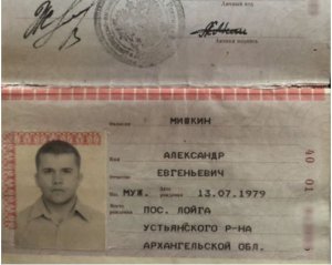 Bellingcat вдалося роздобути копію паспорта Мішкіна. Згідно з цим документом, майбутній російський спецагент народився в селищі Лойга Архангельської області в 1979 році. Цей паспорт отримав в 2001 році в Санкт-Петербурзі.