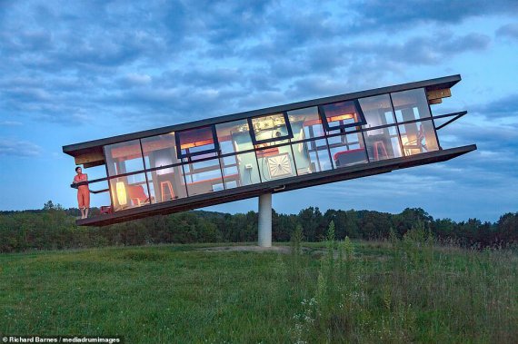 Крутиться на вітрі і нахиляється, коли по ньому ходиш. Знаходиться у північній частині штату Нью-Йорк у парку скульптур Art Omi, розповідає Daily Mail.