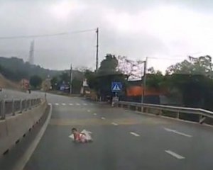 У В'єтнамі на одній з автомагістралей відеореєстратор зняв немовля, що повзе через проїжджу частину.