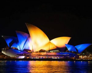 Сіднейський оперний театр підсвітили кольорами українського прапору. Фото: facebook.com/SenatorMarisePayne