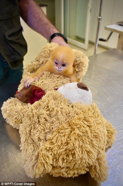 Дитинчаті сутінкового лангура з тайської провінції Чумпхон виповнився один тиждень. Його матір роздерли здичавілі собаки. Співробітники Фонду друзів дикої природи Таїланду (WFFT) дали йому ведмедя замість батьків, повідомляє Daily Mail.