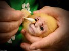 "Наша рятувальна команда була шокована, побачивши дуже малого лангура з численними слідами укусів. Йому було близько тижня, бо у нього ще не відпала пуповина", - говорить представник Фонду.