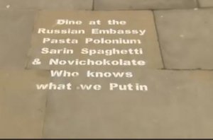 Перед російським посольством у британському Лондоні невідомі нанесли на асфальт іронічний напис.