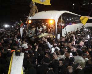Зокрема, під час процесу натовп у Газі оточив заручників, яких вели до автобусів Міжнародного комітету Червоного Хреста. Крім того, палестинці штовхали автобуси МКЧХ.