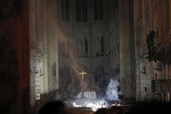 З'явились перші фото зсередини собору Паризької Богоматері після пожежі.