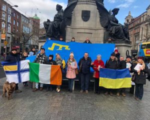В Дублін (Ірландія) в рамках акції Об'єднані Прапором на центральній вулиці розгорнули кримськотатарський прапор та прапор військово-морських сил України.