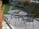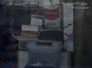 Поруч валяються металеві труби, стоять іржаві металеві меблі для саду та коробки для підгузників.