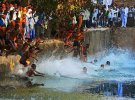 Вірян поливали священною водою, над якою молилися цілу ніч. Церковники в яскравих вбраннях співали релігійні піснні.