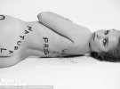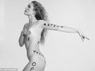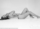 У проекті взяли участь інші моделі. Вони теж втілили на своїй шкірі слова. Їхні зображення будуть представлені в журналі, коли він буде опублікований на наступному тижні.