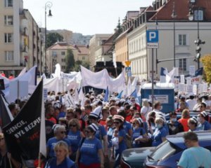 У центрі Варшави, сотні польських медиків вийшли на акцію протесту.
