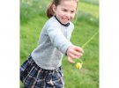 Шарлотта зображена під час гри на зеленій галявині. На одному з фото одягнена в картату спідницю та кардиган, а на іншому — у блакитну сукню в квітковий принт і з білим коміром. На ногах у принцеси сині кеди без шнурків.