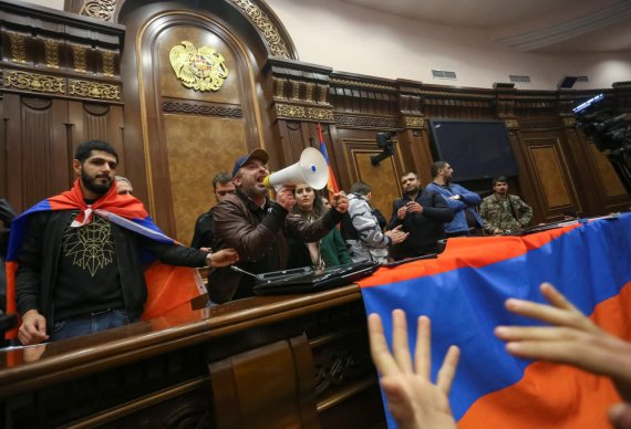 Десятки людей увірвалися в будівлі уряду і парламенту Вірменії після підписання угоди про припинення бойових дій в Нагірному Карабасі.
