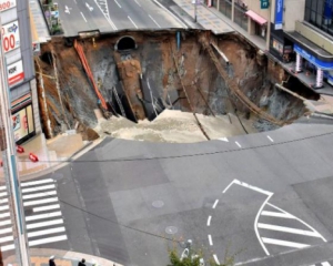 У центрі японського міста Фукуока на острові Кюсю утворилася величезна яма. Про це повідомляє The Telegraph.
