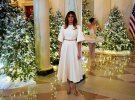 Оцінити різдвяне оформлення Білого дому першими запросили дітей. Для зустрічі з ними Меланія Трамп обрала білосніжну сукню Christian Dior із широкими рукавами. Один із запрошених на урочистості дітей назвав першу леді ангелом.