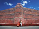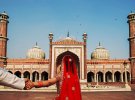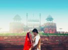 Молоді позують на тлі фортець та будівель - Червоний Форт, Джама Масджид, Гробниця Гумаюн, Растрапаті Бхаван.