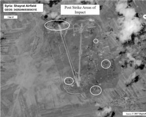 Ракетним ударом США по сирійській авіабазі пошкоджено або повністю знищено 20% бойової авіації сирійської урядової армії, а також склади палива, боєприпасів та засоби протиповітряної оборони,