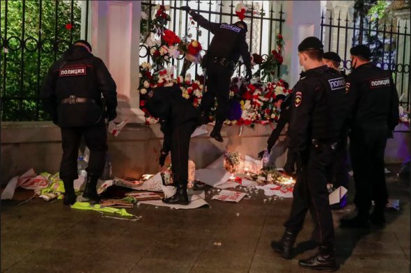Увечері в середу, 12 серпня, в Москві, біля посольства Білорусі, поліцейські розтоптали меморіал на підтримку білоруського народу.