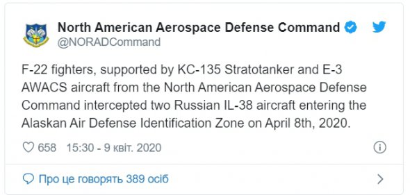 У середу, 8 квітня, над Беринговим морем, північніше Алеутських островів, у зону ідентифікації США увійшли 2 російські винищувачі Іл-38.