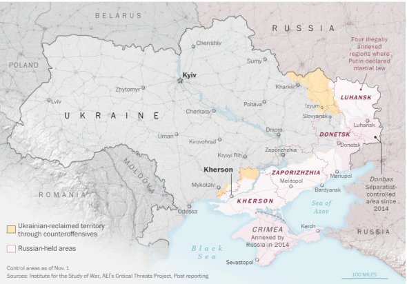 В останні дні зусилля зі звільнення херсонських міст ще більше сповільнилися, оскільки осінні дощі вже перетворили землю на болото. І російська оборона, схоже, не сиплеться, як це було, коли українські війська прорвали російські позиції у Харківській області у вересні.