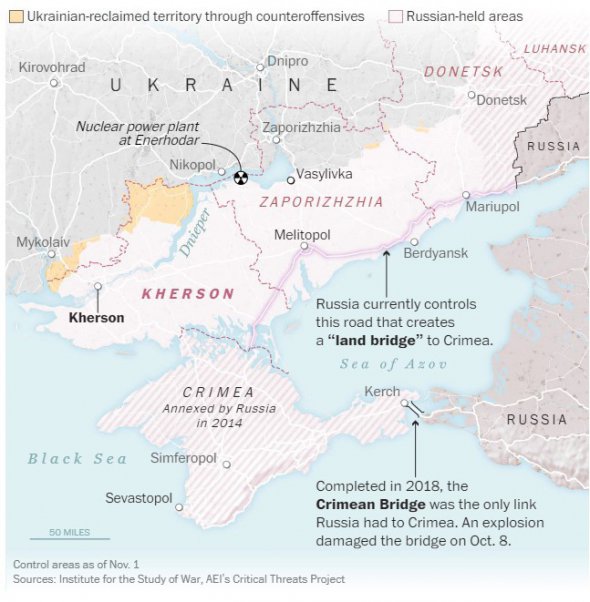 Херсонська область - останній найважливіший компонент "сухопутного мосту" з материкової частини Росії до Криму, про який мріяв Путін з того часу, як Москва вторглася на півострів і незаконно анексувала його в 2014 році.