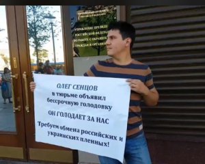 У центрі столиці Росії Москві перед будівлею адміністрації президента Володимира Путіна відбувається пікет під назвою "Не вбивайте Олега Сенцова".