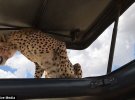 Дах джипа для сафарі був піднятий. В машині сиділи 5 людей, окрім гіда. Геперд вискочив на машину і заліз під дах. Хижак опинився в салоні автомобіля, пише Daily Mail.