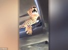 Тварину більше цікавила тінь, в якій вона могла сховатись від сонця, ніж пасажири авто. 13-річна Лейлані стала поряд з гепардом і зробила фото з ним.