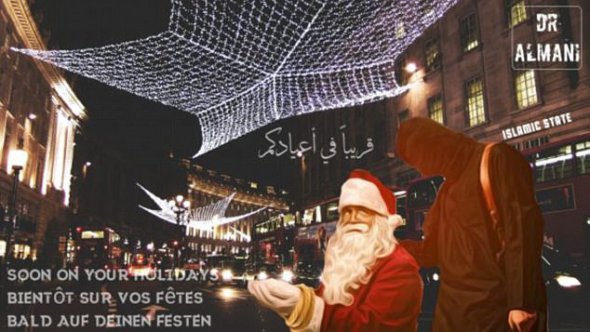Екстремісти розсилають картинки з гаслами за допомогою месенджерів. На одній із них, наприклад, зображений зв'язаний Санта-Клаус, за спиною якого стоїть смертник на тлі Ріджент-стріт у Лондоні, пише Daily Mail.