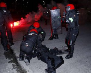 У центрі Більбао почалися сутички, іспанська поліція для врегулювання ситуації залучила понад 500 правоохоронців. В одного з них під час протистоянь стався серцевий напад.