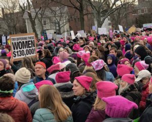 Сотні тисячі людей вийшли зокрема на вулиці Вашингтону, Нью-Йорку, Чикаго, Лос-Анджелеса. Демонстрантки одягли рожеві в'язані шапочки. Цим намагалися нагадати про грубі висловлювання Трампа на адресу жінок.