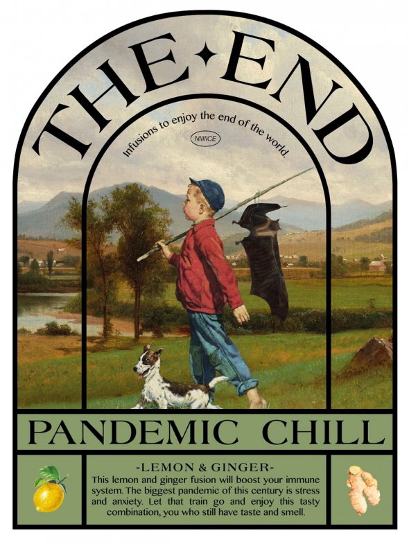 Бренд The End сатирично пропонує широкий вибір трав'яних настоїв для різних сценаріїв кінця світу, пише Creative Review. Найактуальнішим наразі є Pandemic Chill із поєднанням лимона й імбиру.