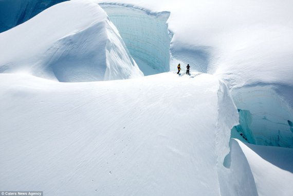 На фото видно, який мізерно малий Колінсон порівняно зі сніговою пустелею на вершині.