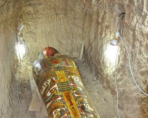 Іспанські археологи знайшли саркофаг неподалік храму в Луксорі. Храм збудували під час правління Тутмоса III. У дерев'яному кольоровому ящику була загорнута в льон мумія. Припускають, належала аристократові Аменренефу. Міністр старовинної спадщини Єгипту заявив, що орієнтовно знахідка датується 1075-666 роками до н. е.