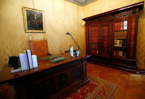 Особистий кабінет папи в Кастель-Гандольфо. Папа Римський Бенедикт XVI, який пішов у відставку в 2013 році, став останнім понтифіком, що використовувати віллу в якості літньої резиденції.