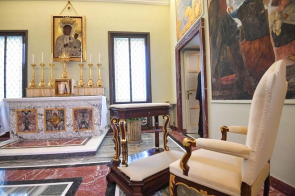 Каплиця Божої Матері Ченстоховської в одному з 20 приміщень вілли. Зазвичай туристи їхали в Кастель-Гандольфо, щоб отримати благословення від папи, коли папський двір переїхав в резиденцію на кілька літніх місяців.