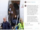 Подружжя виходило з літака, коли їх підловили папараці, пише РБК-Україна.