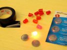 Чоловік взяв кілька червоних світлодіодів, батарейку-таблетку, скріпив їх разом клейкою стрічкою. Далі чорним пластиліном приліпив їх на обличчя.