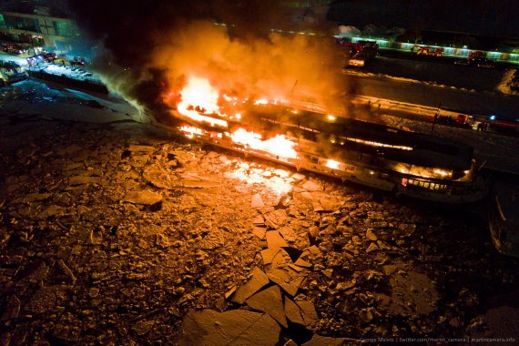 У Москві на Нагатинській набережній загорівся прогулянковий корабель. Горить 1 тис. кв. м.