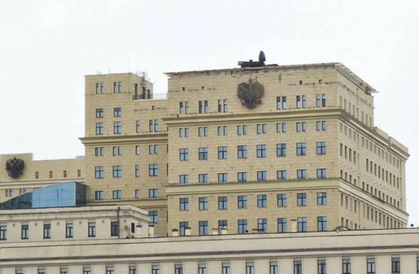 Ще один "Панцир" встановили навіть на даху будівлі міністерства оборони Росії. Про це повідомило Міноборони України у Telegram.